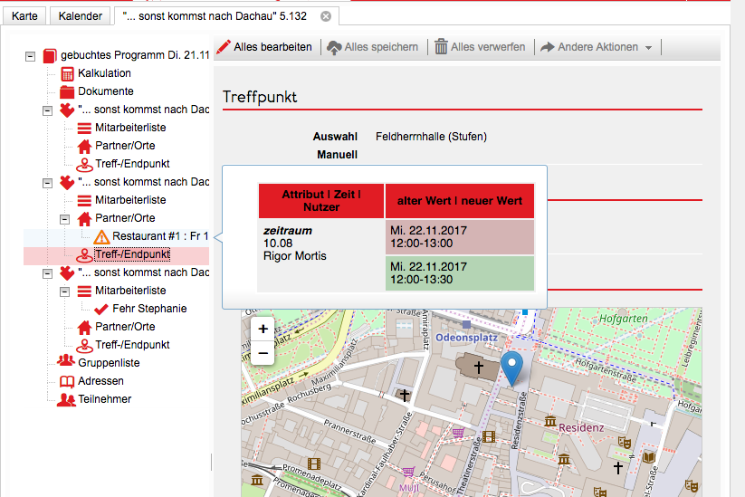 Die Mitarbeiterliste ist wohl das Objekt dass in Bezug auf die parallele Bearbetung die meiste Aufmerksamkeit verdient weil diese ja nicht nur durch die Büromannschaft sondern auch durch die Rundgangsleiter selber bearbeitet wird: Zustimmung, Ablehnung, ...